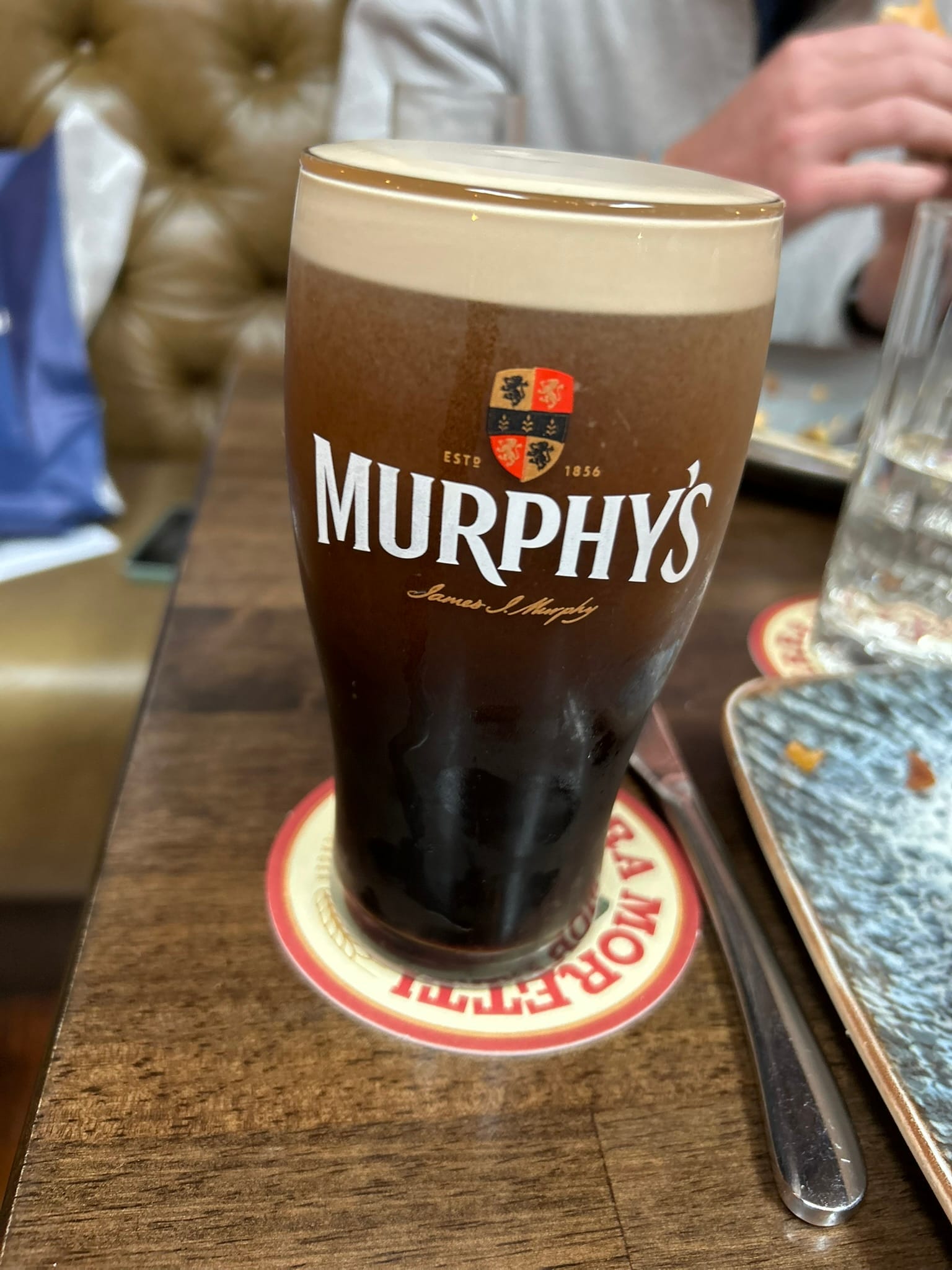 I would say that Murphy's is a beer drinker's stout. It has a lot going on between flavor, cream and head. I actually had a second and skipped the Guinness altogether at this meal.